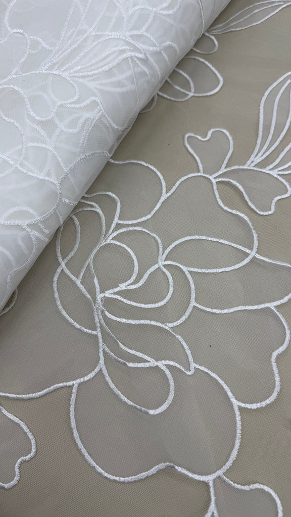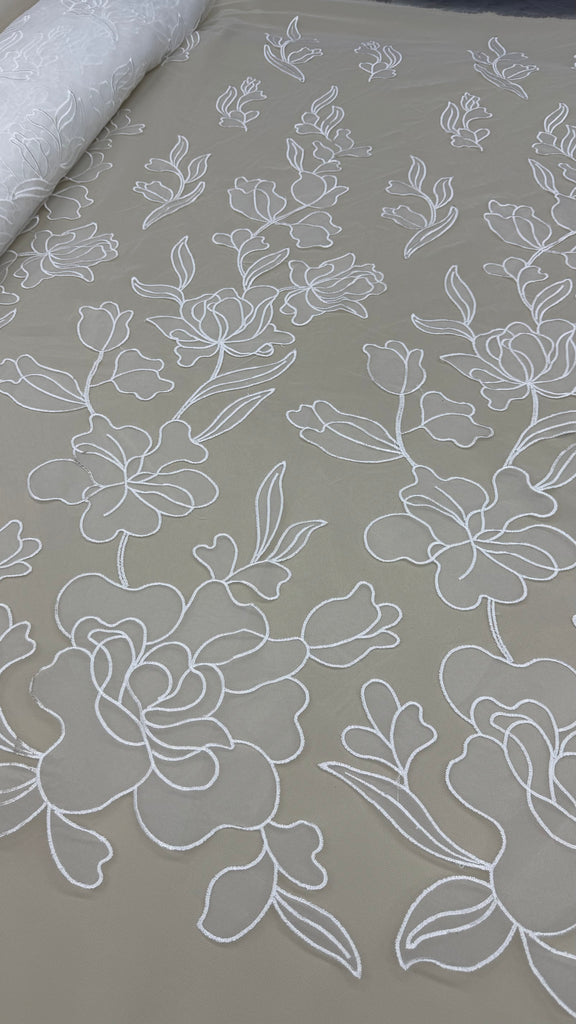 - floral lace with Organdy petals edged embroidery - 140cm wide