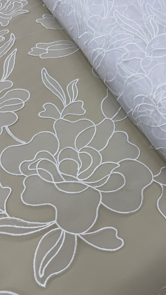 - floral lace with Organdy petals edged embroidery - 140cm wide