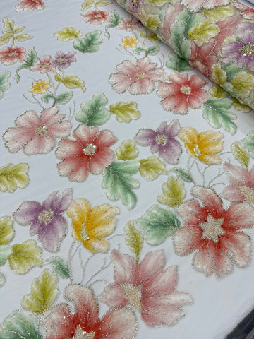 - floral lace with intertwined petals filled with pearls and sequins - 140cm wide