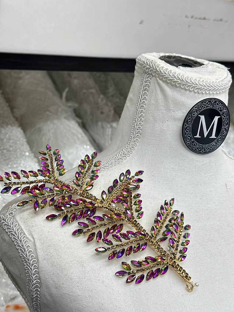 A high-shine appliqué crafted with premium crystals. Flexible, easy to sew, and perfect for adding sparkle to dresses, blazers, and custom creations.