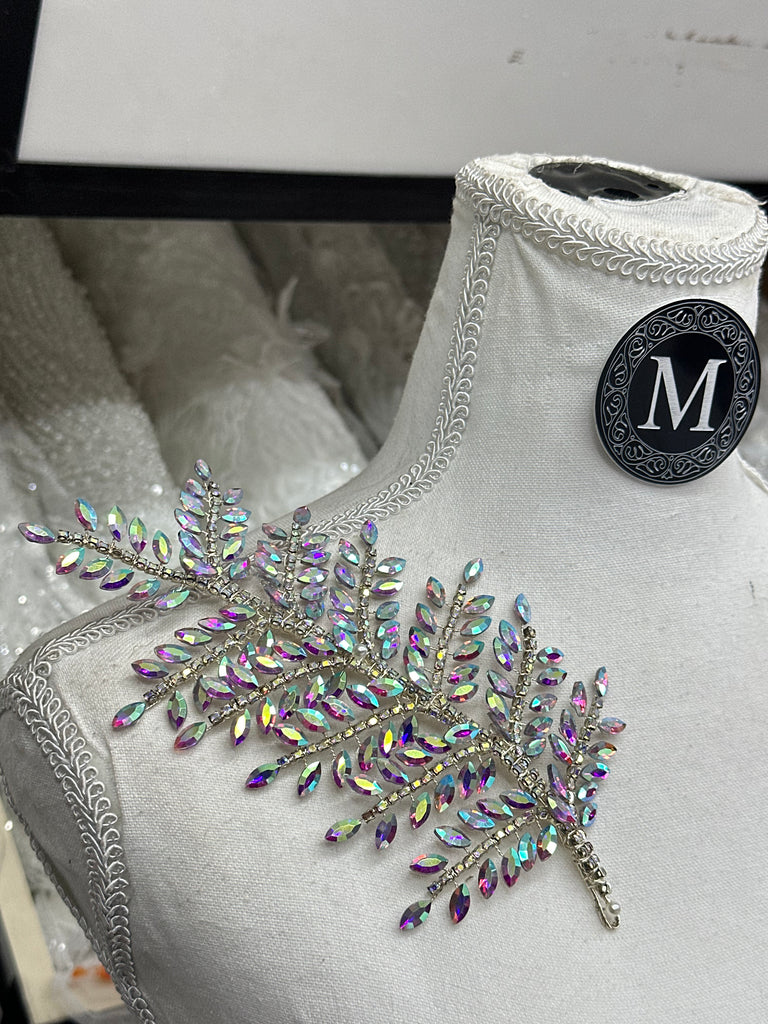 A high-shine appliqué crafted with premium crystals. Flexible, easy to sew, and perfect for adding sparkle to dresses, blazers, and custom creations.