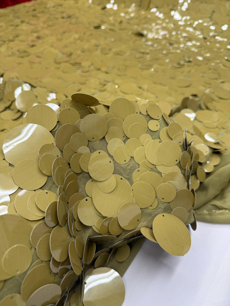 Elegant sequence clustered in a heavy opulence in various size discs perfectly suited for red carpet dresses or any other use . 140 CM wide