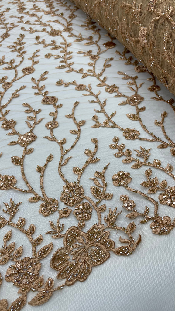 Timeless Elegence, The Most Trendy Vintage Embroidered Lace With Beadwork Detail - 140cm wide