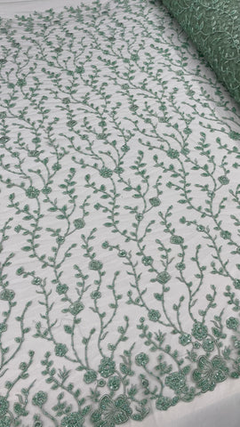 Beaded Lace - Two Toned Sage & Rosegold
