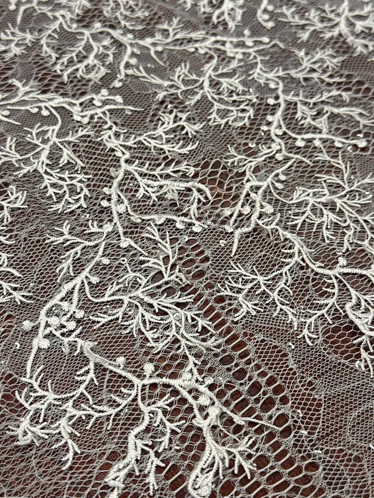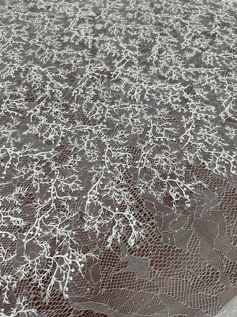 Soft, elegant, and beautifully detailed — our Vintage Stretch Chantilly Lace adds a touch of luxury to any design. Lightly stretchy for comfort and perfect for dresses, bridal wear, and evening pieces.